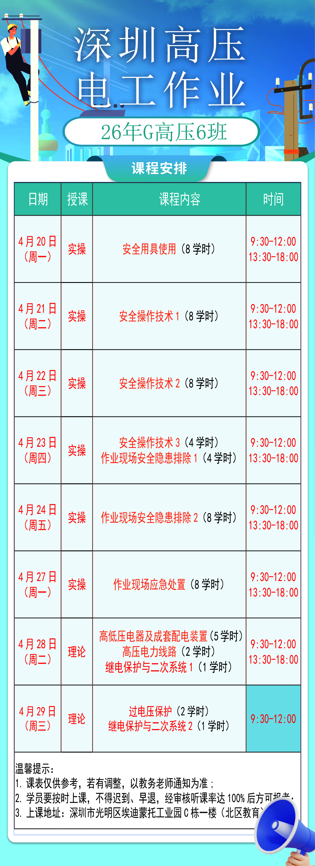 26年G低压9班 (4月11日开班)4月9日截止,已满员,请勿对接;